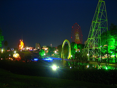 | グリーンランドは熊本県荒尾市にある遊園地で、広大な敷地にたくさんのアトラクションがあります。やや老朽化は否めないですが、子供には楽しめる施設です。今回はナイト営業で、夜の遊園地はなんか神秘的で雰囲気は最高にいいです。 この日は九州花火師対決ということで打ち上げ花火を見ることが出来ました。 |