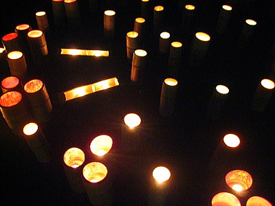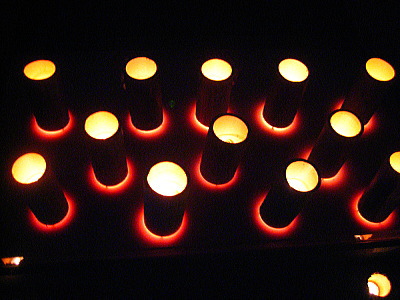 | 竹筒にロウソクが灯されてます。 |