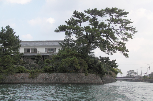 | 萩城跡横の指月橋からスタートする遊覧船・萩八景遊覧船は、堀内重要伝統的建造物群保存地区を眺めながら、橋本川に向かい白壁が続く平安古重要伝統的建造物群保存地区の旧田中別邸でUターンして、日本海に出てから乗船場に戻るコースを40分で回ります。 乗船料金:大人1,200円・小人600円。 |