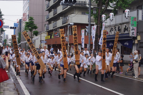| 旧町名が書かれた板を持って先頭を走ります。 |