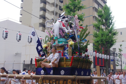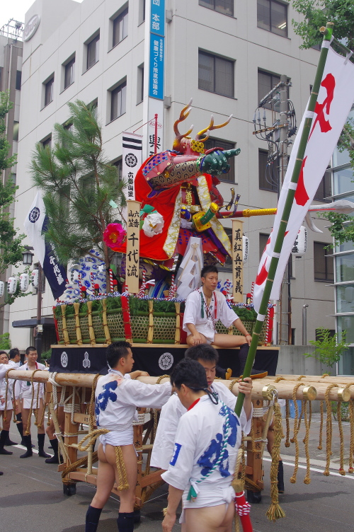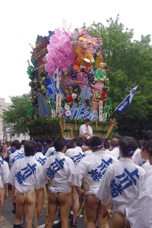 | 走る飾り山笠である八番山笠・上川端流:船弁慶(表標題)。 |