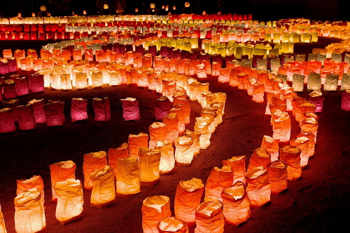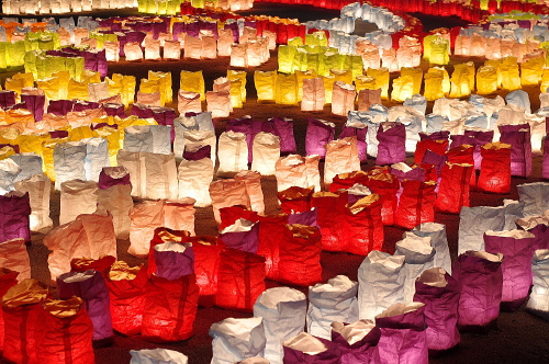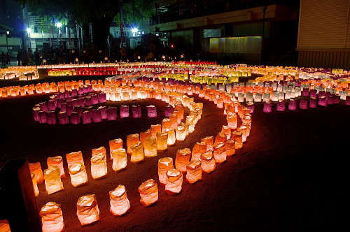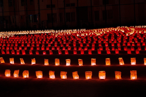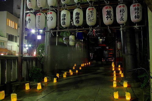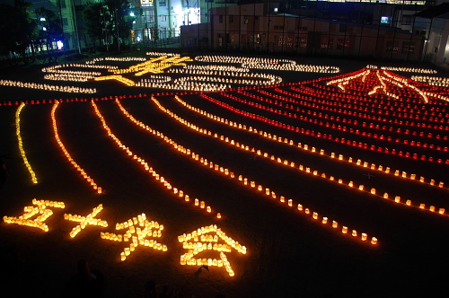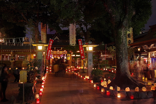 | 福岡市博多区で毎年開催される博多灯明ウォッチングは2013年で第19回を数えるイベントです。博多の観光名所などが会場になり、手作りの灯明が灯されて幻想的な光景を観賞する事が出来ます。また、手作りの灯明には蝋燭を使っています。1日限りの開催で、日没から3時間と非常に短い時間に開催されます。 2013年の会場: 御供所地域・東長寺・藤田公園・JR博多駅・大浜、奈良屋地区・櫛田神社・旧冷泉小学校・博多リバレイン・博多埠頭 今回は櫛田神社・旧冷泉小学校を訪問しました。 |