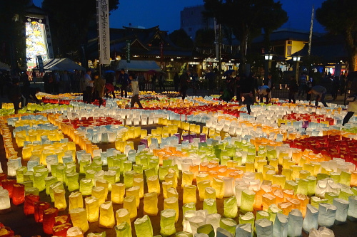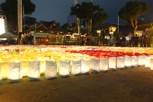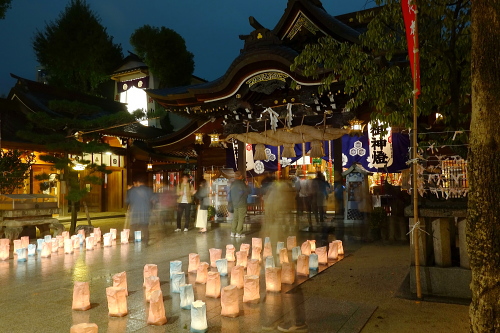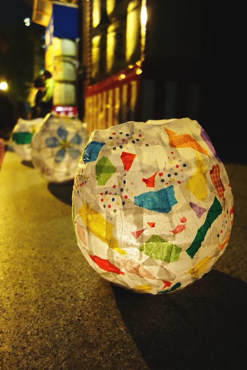 | 手作りの櫛田神社の灯明。 |