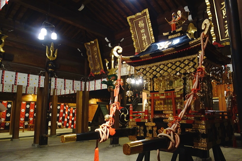 | 櫛田神社拝殿には御神輿がありました。 |