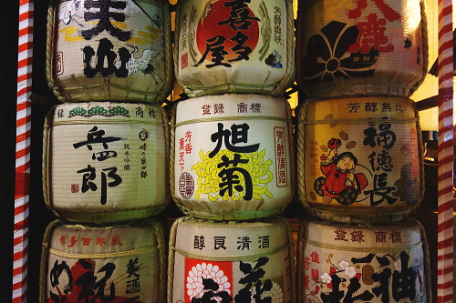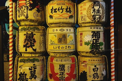 | 櫛田神社に奉納されている清酒。 |