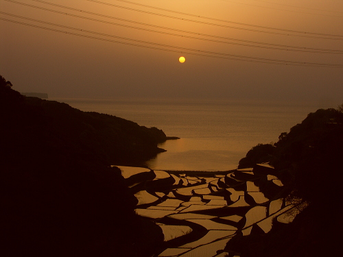 日本の棚田100選に選定されている、玄海町の「浜野浦の棚田」の夕景です。浜の浦の棚田は