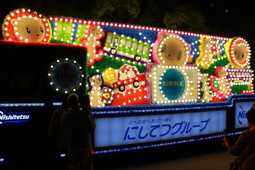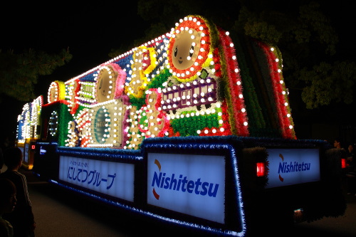 | 西鉄の電飾されている花自動車。 |