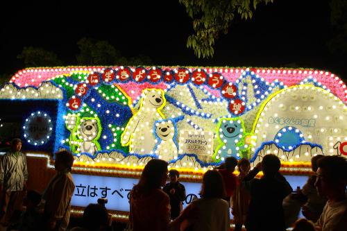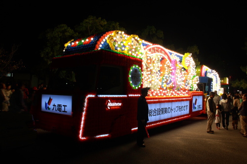 | 九電工の電飾されている花自動車。 |