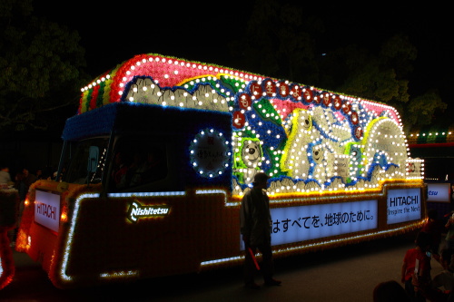 | 日立の電飾されている花自動車。 |