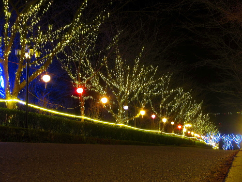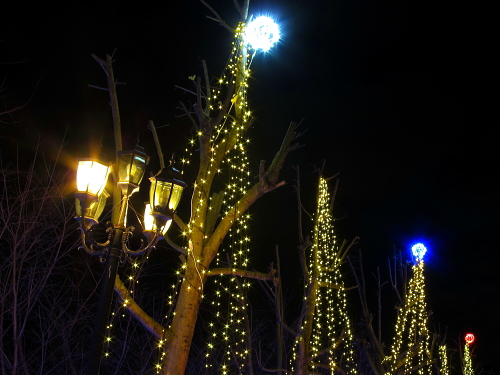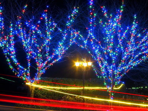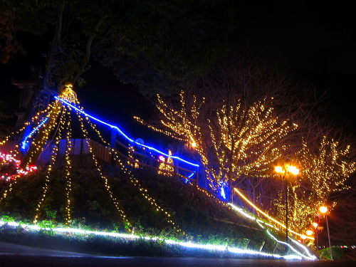 | 福岡県筑前町に温泉施設である「花立山温泉」では、年末の時期になるとイルミネーションが点灯されます。規模自体はさほど大きなものではありませんが、花立山温泉に入りお食事を楽しんだ後に、イルミネーションを眺めるという楽しみ方があります。施設内にあるゴンドラに乗れば、移動するゴンドラ内からイルミネーションを眺める事も出来ます。 |