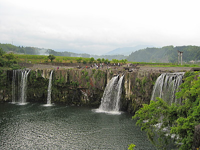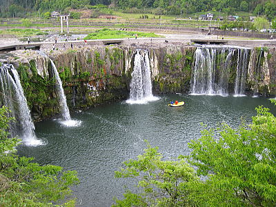 | 原尻の滝。幅120m・高さ20mの規模です。 |