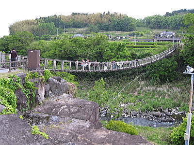 | 滝から200mほど下流にかかっている吊橋・滝見橋。 |