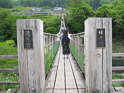 | 滝見橋は木製で歩くと吊橋らしくかなり揺れます。 |