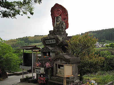 | 原尻の滝にある不動明王の像。 |