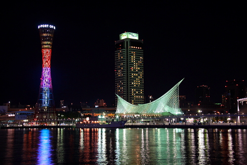| 神戸ポートタワーと神戸海洋博物館を望む。 |