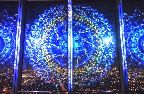 | 窓に投射されるプロジェクションマッピング。 |