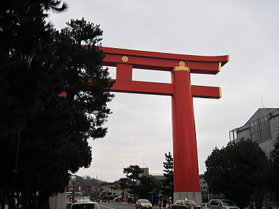 | 平安神宮の参道には大きな鳥居があります。 |