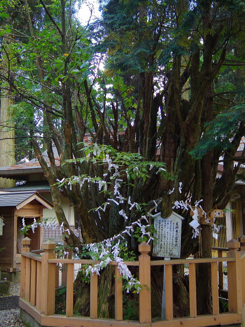 | 参道にある杉の樹(五百枝裏杉)。枝の向きが変わっています。 |