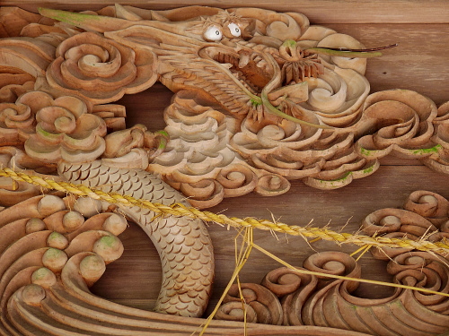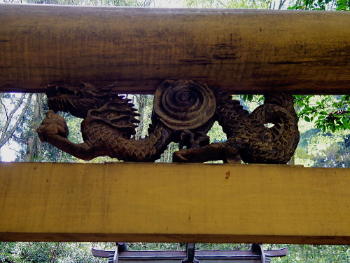 | 鳥居に掘られている龍の彫刻。 |