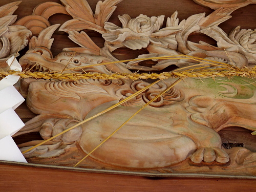 | 幣立神宮拝殿横にある彫刻。 |