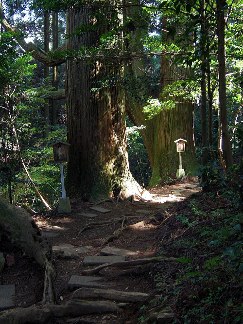 | 参道にある杉の樹。双子杉。 |