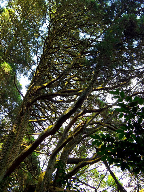 | 参道にある杉の樹。枝の向きが変わっています。 |
