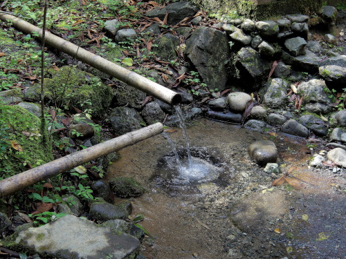 | 湧水は飲用可です。ペットボトルに入れる方もいました。 |