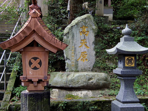 | 石段にある石塔と高天原を記された石。 |