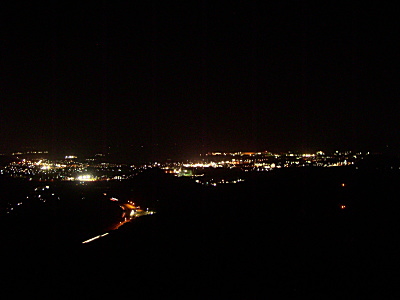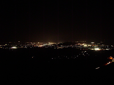 日岳公園から見た諫早市の夜景。左側は諫早市中心部。中央右は諫早工業団地。