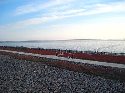 | 有明海に面する東与賀海岸には、秋になると自生しているシチメンソウを観察できます。この海岸は昭和天皇が最後に行幸した場所で、記念碑が建立されてます。また、有明海を見るとムツゴロウを観察する事ができます。 |
