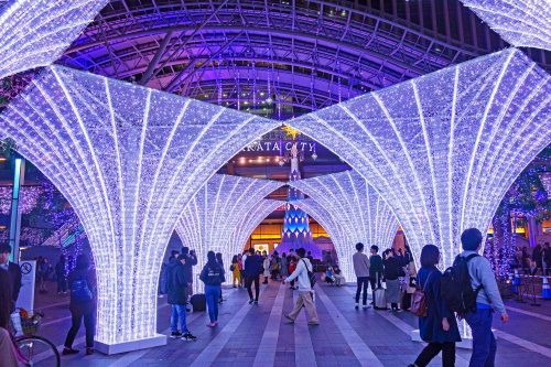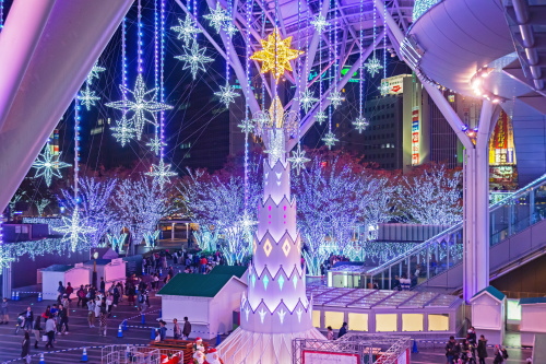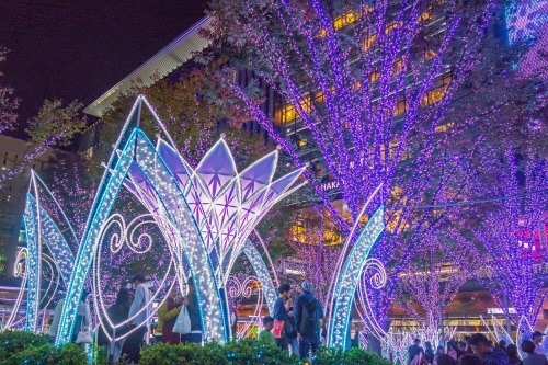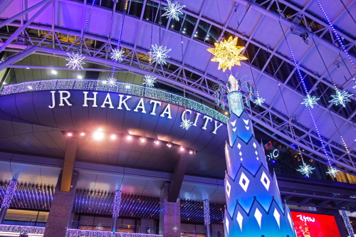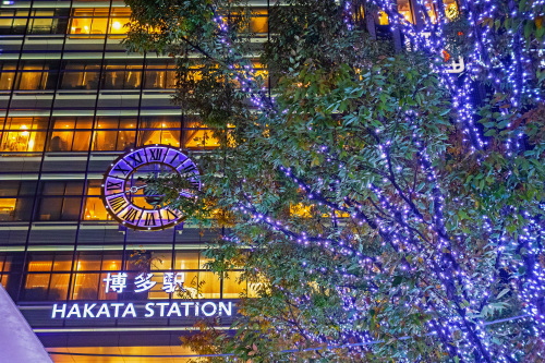 | 福岡の玄関口であるJR博多駅では、約80万個のLED電球を使用したイルミネーション「光の街・博多」が開催されます。昨年のイルミネーションとは大幅に変わってはいないものの、時間の経過により電球の色が変化していきます。博多駅前広場に設置された高さ約14mの「光の塔」が、美しいイルミネーションを鑑賞する事ができます。 点灯期間:2018年11月8日〜2019年1月9日まで 点灯時間:17:00〜24:00 |