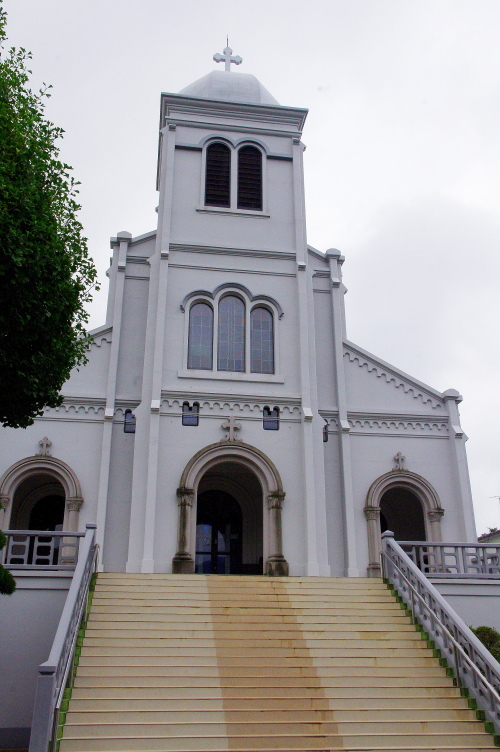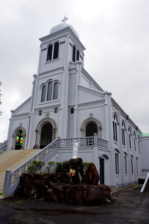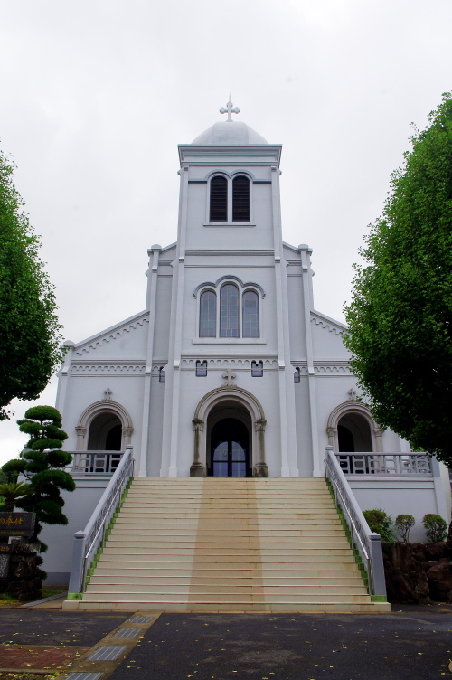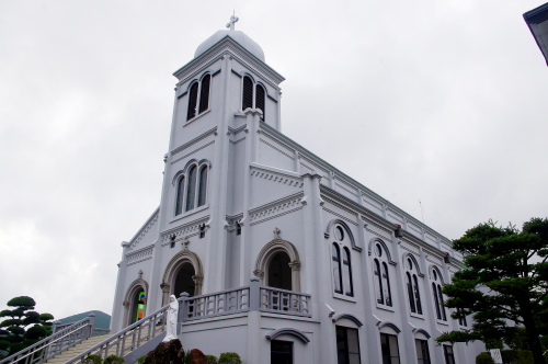 | 平戸市の中部・紐差地区にあり、東洋でも指折りのロマネスク様式の教会で、長崎市の旧浦上天主堂が原子爆弾で倒壊した後は日本最大の教会とも呼ばれてました。鉄川与助により1929年に鉄筋コンクリート造りで建立されたこの教会は、紐差地区で一際目立つ建築物で白色の美しい建築物です。 |