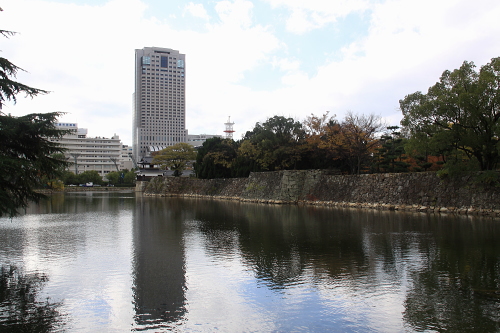 | 石段から広島城天守閣を望む。 |