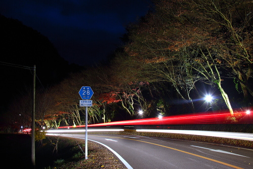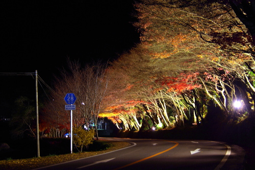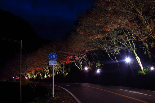県道28号線沿いにあるひさしもみじのライトアップ。