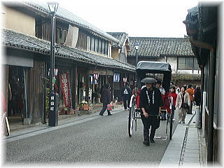 観光客が訪れ、人力車や馬車などが走ります。