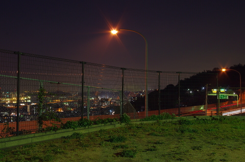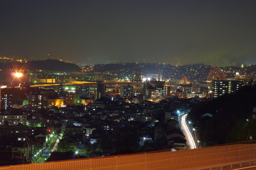 | 北九州を代表する皿倉山へ登る帆柱ケーブルの駅・山麓駅からやや下ったところに帆柱ふもと公園があります。小さい公園ですが、この公園からは八幡の夜景と北九州都市高速の光を眺めることができ、手軽に夜景観賞ができる公園です。公園内は照明があり、雰囲気も悪くなく都市高速を走る車のライトと八幡の夜景が美しいです。 |
