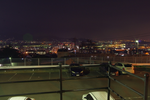 | 北九州を代表する夜景スポットとして有名な皿倉山ですが、その皿倉山に登るケーブルの駅・山麓駅の駐車場からも、八幡の夜景を観賞することができます。皿倉山に登る駅なので当然標高は高くありませんが、手軽に夜景観賞ができるスポットとして、夜景鑑賞に訪れています。また、金網越しにはなりますが、八幡の夜景を鑑賞できることもあり、車内からの夜景鑑賞が可能です。 |