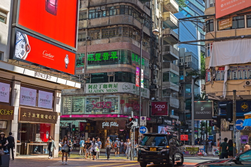 | そごうデパート前交差点より渣甸街を望む。 |