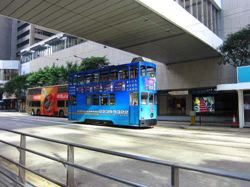| セントラルを走るトラム。いろんな柄のトラムが市内を走っています。 |