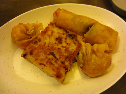 | 粥と一緒に付いてきた揚げ春巻き。 |