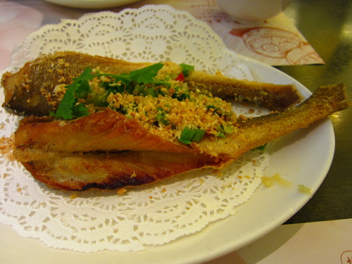 | 魚の揚げ物胡麻あえ。 |