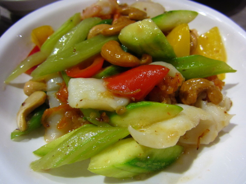 | イカと野菜の炒め物。 |