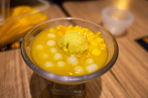 | こちらもマンゴープリンとタピオカのデザート。 |