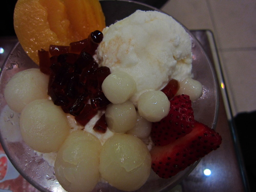 | 許留山のバニラアイスとフルーツの盛り合わせ。 |