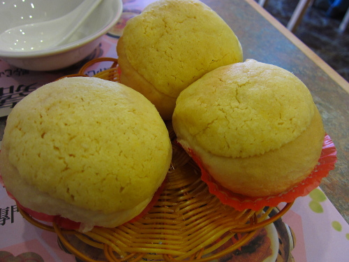 | メロンパンのような味がする点心。 |