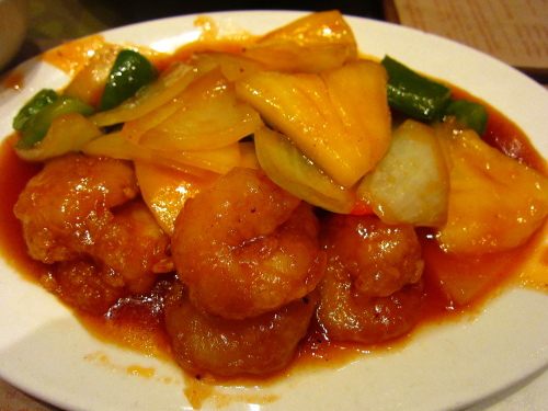 | 鶏と豚の料理。いい味付けです。 |