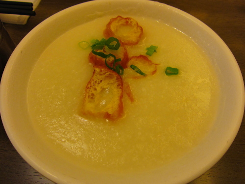 | 朝食に頂いた粥。トロトロです。 |