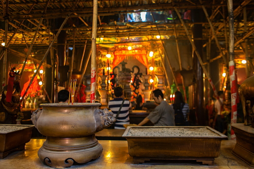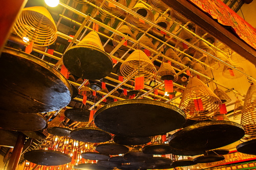 | 文武廟は1847年に中国人の盧阿貴・譚阿才という実力家によって建てられた道教の寺院で、文武廟という名前の通り、文学の神である文神「文昌帝君」と武道の神である三国志の英雄で関羽として知られている武神「関聖帝君」が祀られており、150年以上の歴史を誇る古寺です。また大きな渦巻き状の大きな線香が有名な寺院でもあります。 |