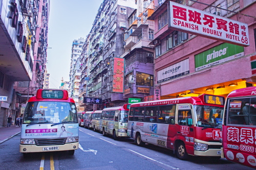 | モンコックの路地に停車しているミニバス。 |