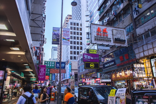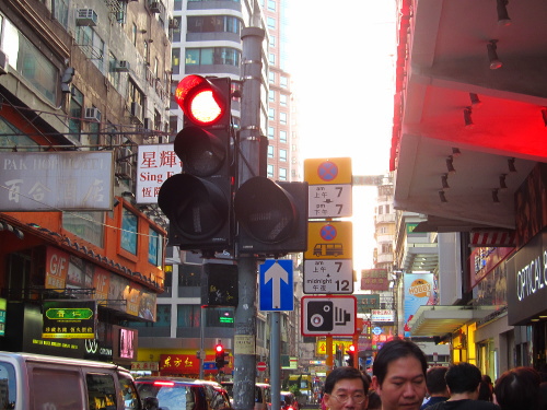 | 人と車が行きかい賑わう様子は、香港のパワーを感じ取れます。 |